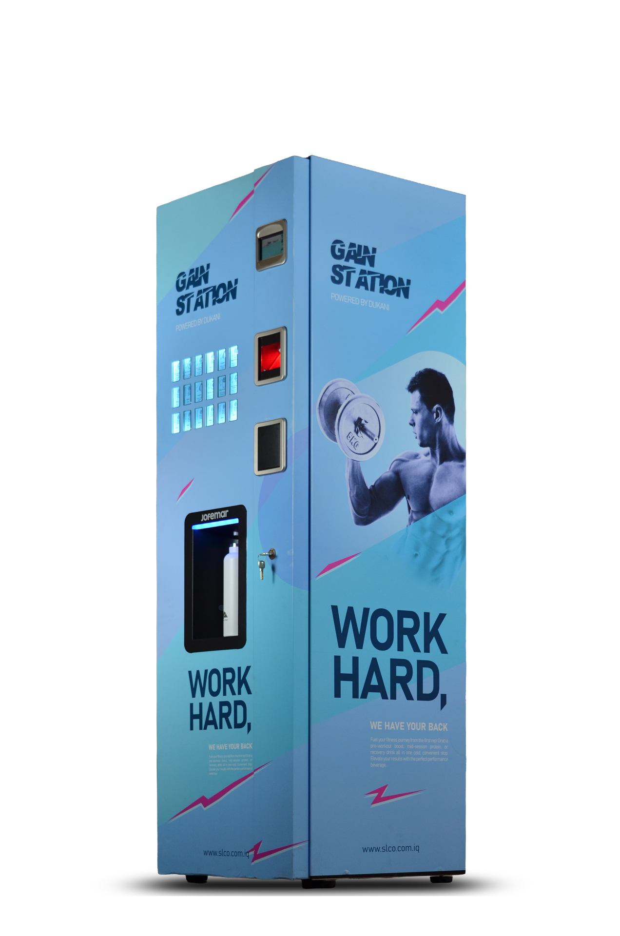 The gain station is a state-of-the-art dispensing solution engineered to deliver refreshing cold beverages with precision. It incorporates a low-consumption cooling unit that guarantees every soluble drink is served at an ideal temperature. Flexibility is at its core, allowing the mixing of multiple soluble products to create unique, personalized flavor profiles. The machine’s robust and elegant build features a customizable front panel and attractive LED lighting in the delivery zone. An intuitive user interface, equipped with a capacitive keyboard and a clear display, makes operation simple and fast. Hygiene and maintenance are prioritized with a fixed boiler and a motorized water distributor that facilitates self-cleaning. Sophisticated photocells detect the placement of cups, supporting sustainable practices by accommodating reusable containers. High-quality water filtration ensures that every serving maintains a pure taste and consistent quality across all doses. This system is highly adaptable, supporting various payment peripherals and telemetry for real-time management and control.